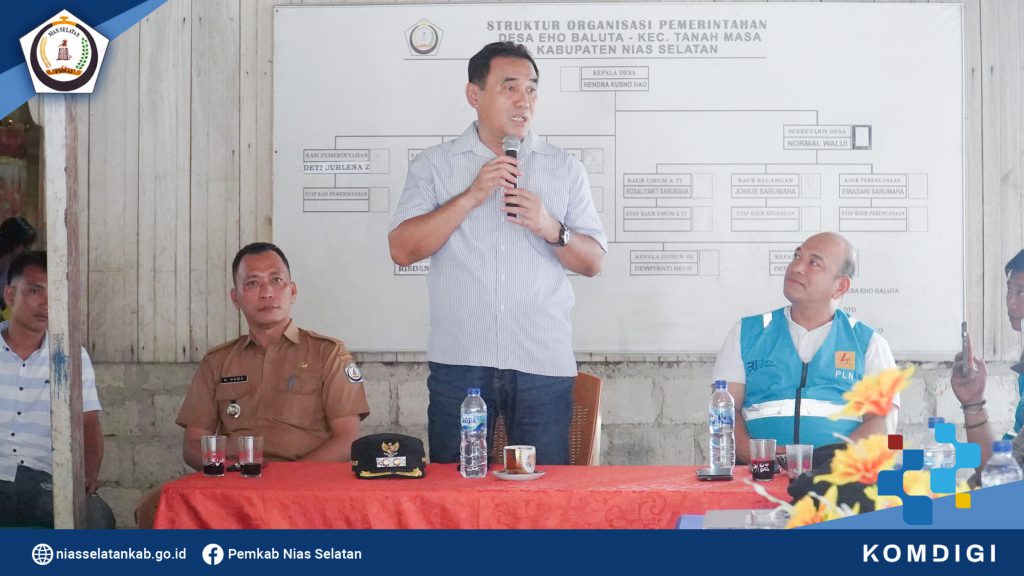 Wakil Bupati Nias Selatan Ir. Yusuf Nache, S.T., M.M. menghadiri pertemuan pada pembahasan tentang keluhan masyarakat yang berkaitan dengan Pemadaman Listrik Tidak Sesuai SOP, Penambahan Daya Listrik, Dan Peningkatan Pelayanan PLN Di Kecamatan Tanah Masa, yang dilaksanakan di Desa Eho Baluta, (Senin, 22/09/2025).