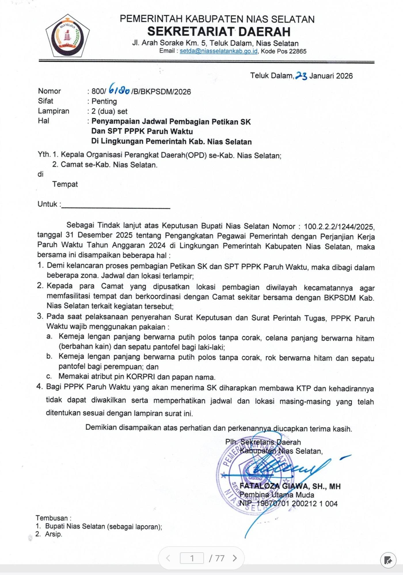 Pengumuman Jadwal Pembagian SK PPPK Paruh Waktu Kabupaten Nias Selatan...