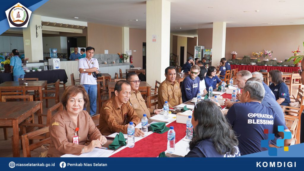 Bupati Nias Selatan Sokhiatulo Laia bersama Wakil Bupati Ir. Yusuf Nache, S.T., M.M, menerima audiensi President Operation Blessing Internasional Mr. Drew Friedrich, Pimpinan CBN South East Asia Mr. Mark McClendon Dan Ketua Yayasan Obor Berkat Indonesia Sandi Baratha, dalam rangka menjalin hubungan kerjasama dalam mendukung Program CBN – OBI dengan Gereja di Kabupaten Nias Selatan, bertempat di Baga Hotel, Senin (19/01/2026)