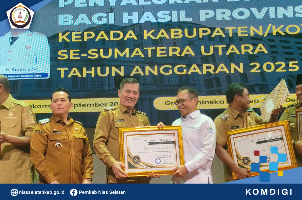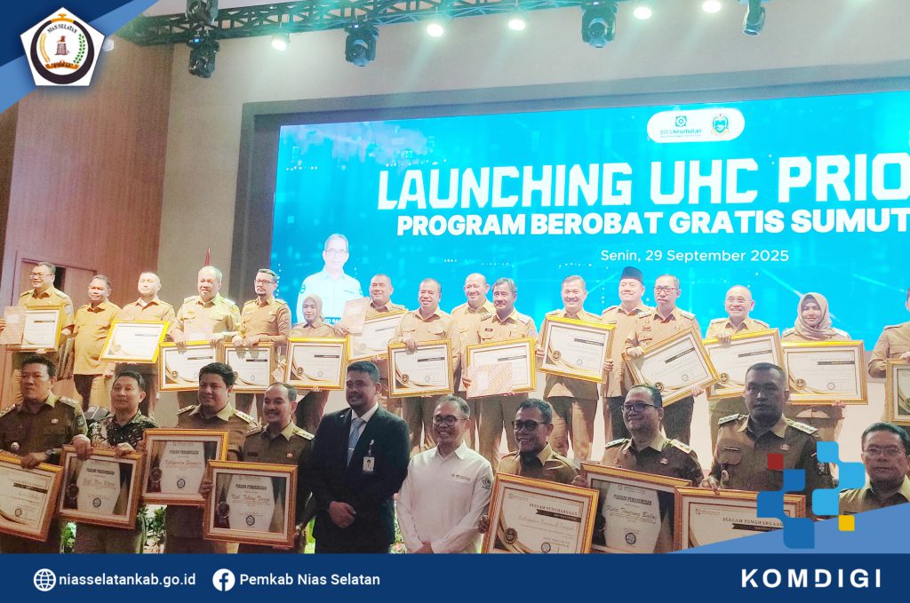 Bupati Nias Selatan Sokhiatulo Laia, menghadiri acara Launching UHC Prioritas Program Berobat Gratis (PROBIS) Sumut Berkah. Bertempat di Graha Bhineka Perkasa Jaya Lubuk Pakam, Deli Serdang. (Senin,29/09/2025).