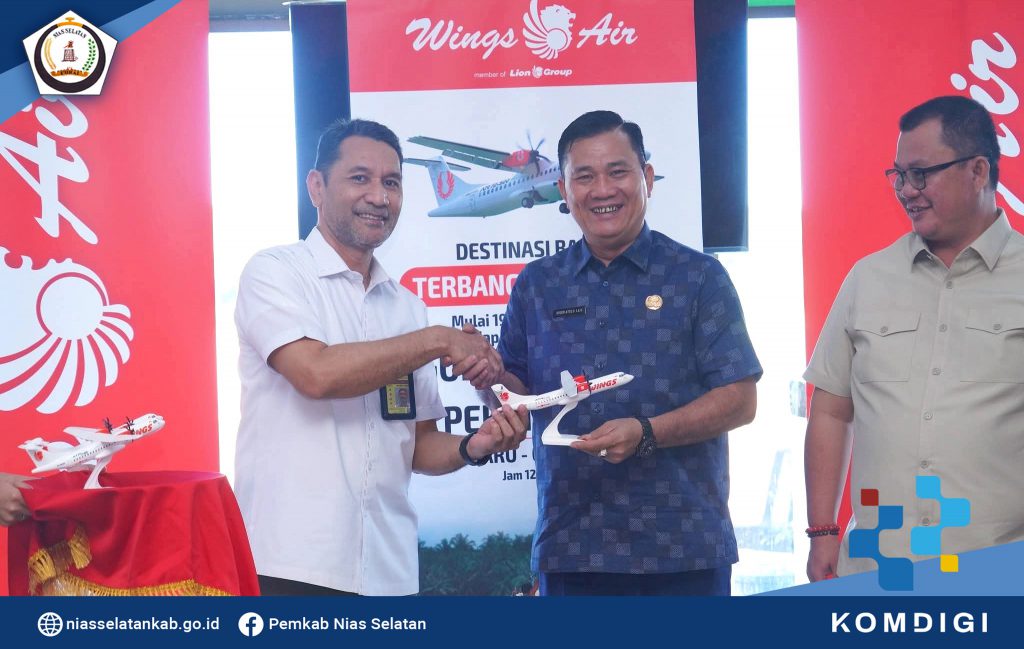 Route penerbangan Wings Air Pulang Pergi (PP) Gunungsitoli – Pekan Baru, terkoneksi dengan Batam, Jakarta, Yogyakarta, dan Surabaya. Route ini akan membuka akses lebih luas untuk berpergian dan berwisata serta peluang bisnis.