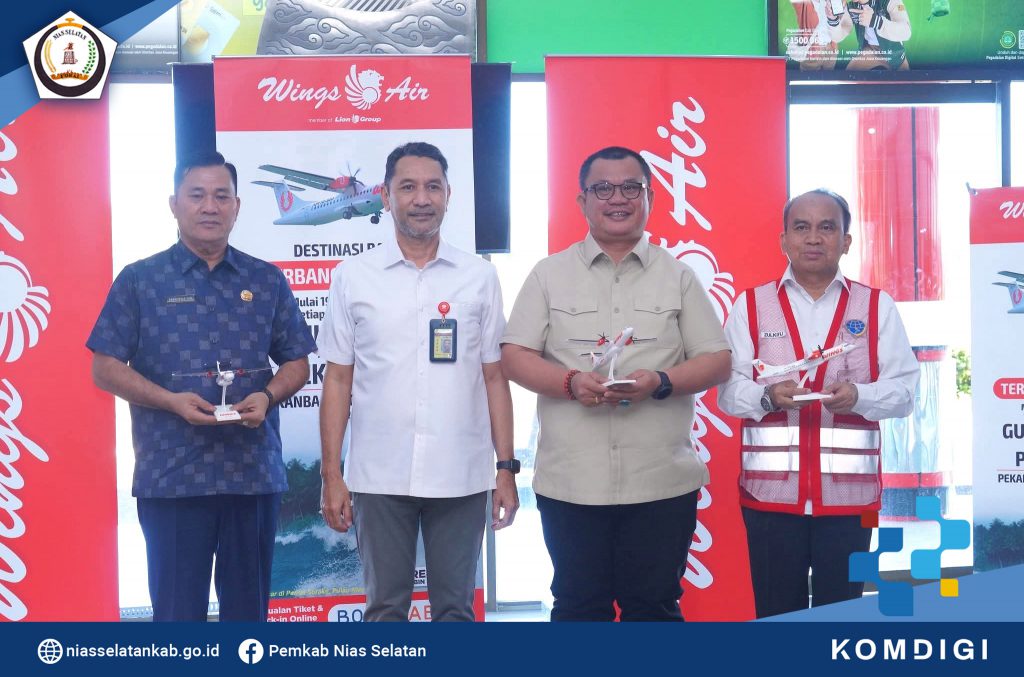 Bupati Nias Selatan Sokhiatulo Laia, menghadiri acara pembukaan route penerbangan perdana Pesawat Wings Abadi Airlines IW 1233 antara Gunungsitoli – Pekan Baru , bertempat di Kantor Binaka Gunungsitoli, Jumat (19/12/2025).