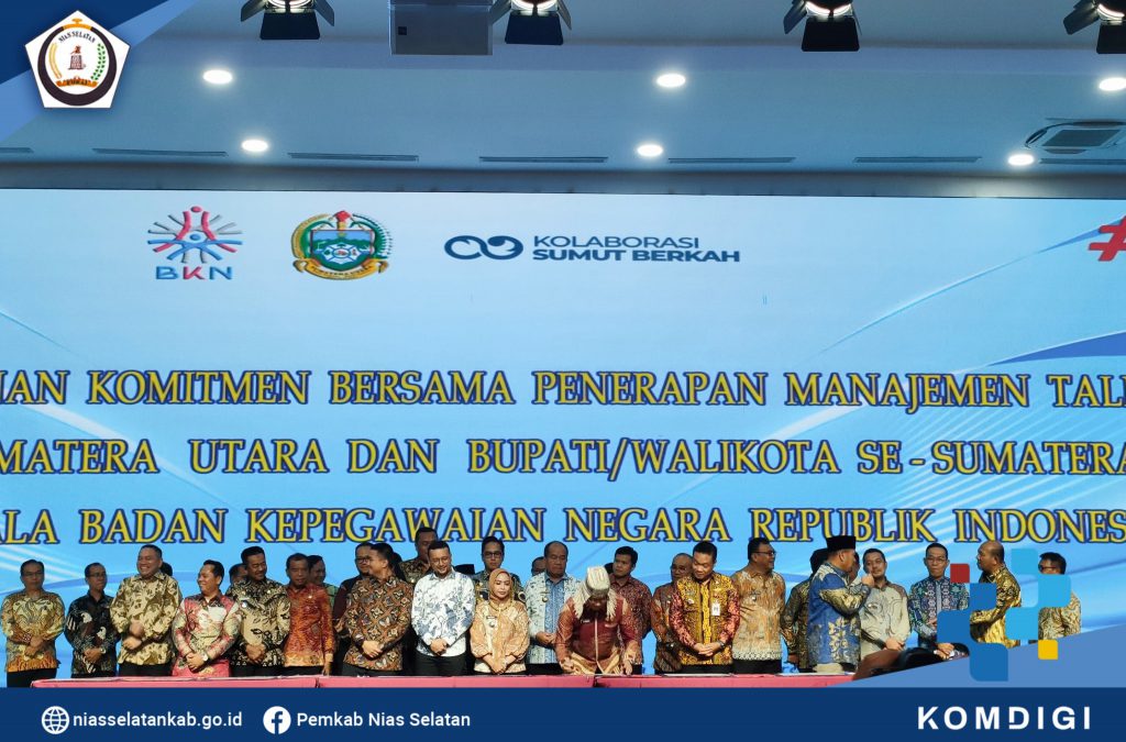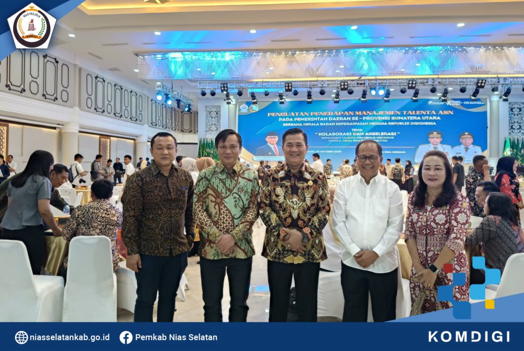 Bupati Nias Selatan Sokhiatulo Laia, menghadiri undangan kegiatan Penguatan Penerapan Manajemen Talenta ASN pada Pemerintahan Daerah Se – Provinsi Sumatera Utara bersama Kepala Badan Kepegawaian Negara (BKN) Republik Indonesia, bertempat di Aula Raja Inal Siregar Lantai II Kantor Gubernur Sumatera Utara, Jln. P. Diponegoro Nomor 3 Medan, (Rabu, 29/10/2025).