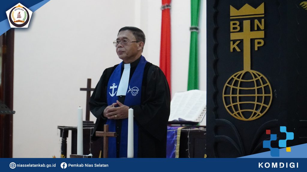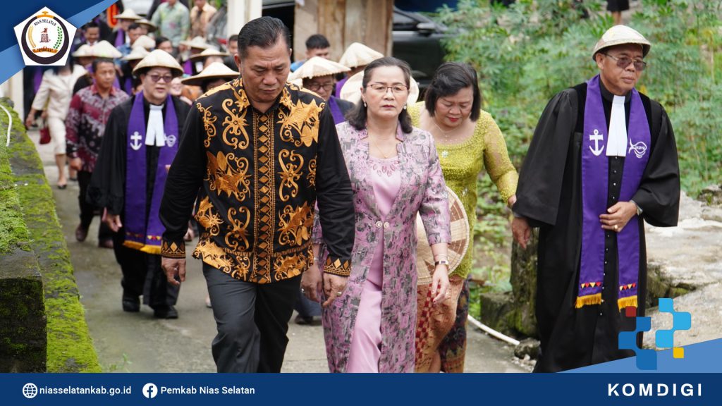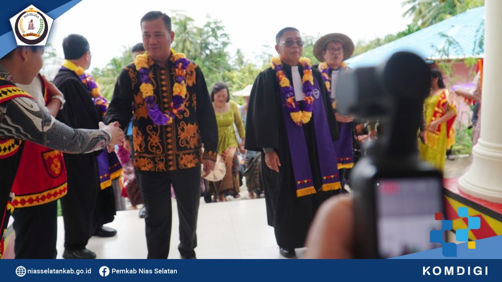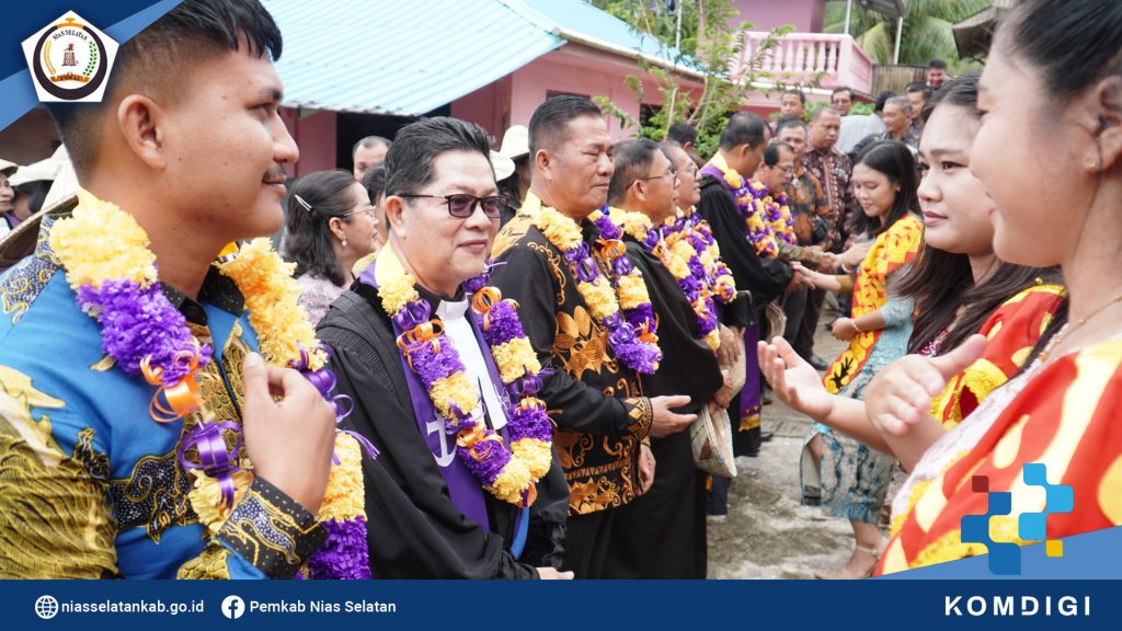 Bupati Nias Selatan Sokhiatulo Laia dan Ketua TP PKK Kabupaten Nias Selatan Ny. Militina Sokhiatulo Laia, bersama Kepala OPD dan rombongan, menghadiri undangan BPHMS BNKP dalam rangka ibadah bersama yang dirangkai dengan Ordinasi Vikar menjadi Pendeta BNKP, yang dilaksanakan di Gedung Gereja BNKP Jemaat Hilisimaetano Resort 11 Desa Hilisimaetano Kec. Maniamolo Kab. Nias Selatan. (Minggu, 07/12/2025).