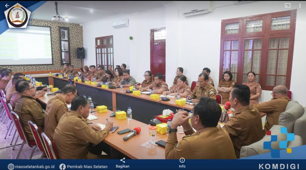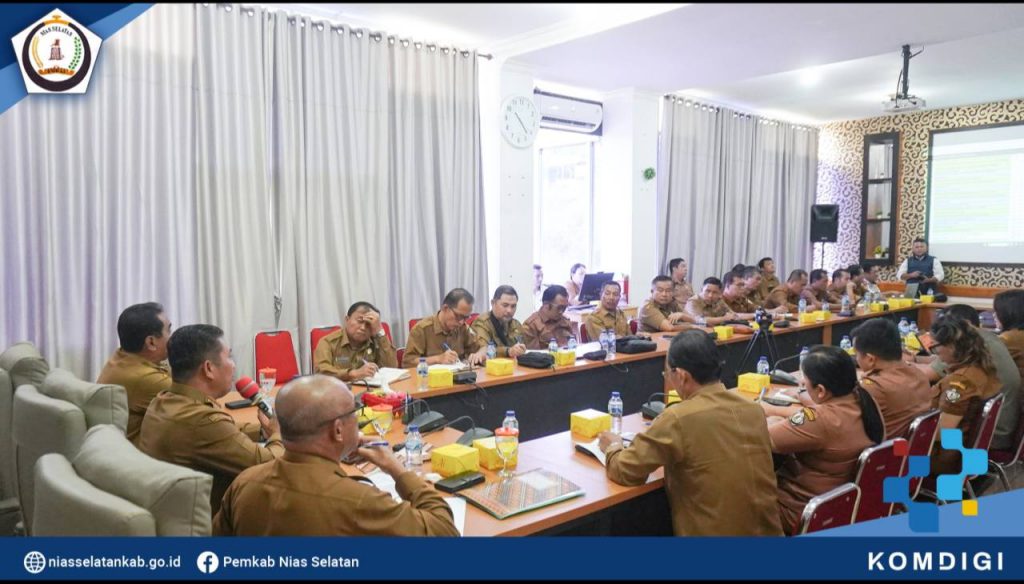 Bupati Nias Selatan Sokhiatulo Laia, memimpin Rapat Koordinasi (Rakor) Rutin seluruh Organisasi Perangkat Daerah (OPD) lingkup Pemerintah Kabupaten Nias Selatan, di ruang meeting Bupati Nias Selatan, Jl. Arah Sorake km. 5 Teluk Dalam, (Senin. 15/12/2025).