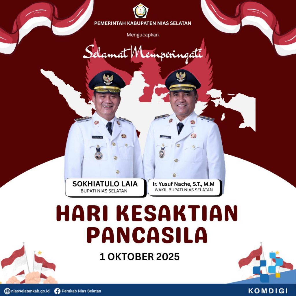 PEMERINTAH KABUPATEN NIAS SELATAN MENGUCAPKAN SELAMAT HARI KESAKTIAN PANCASILAOleh Admin_Diskominfo / 6 Oktober 2025