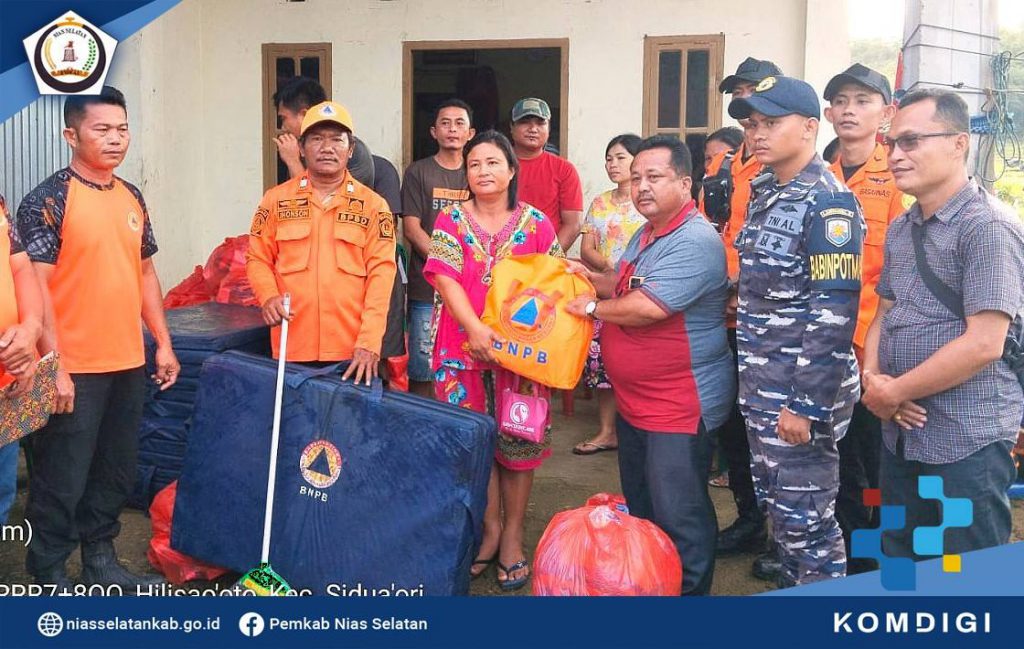 Pemerintah Kabupaten Nias Selatan melalui Badan Penanggulangan Bencana Daerah (BPBD), melakukan pendistribusian bantuan kepada warga terdampak bencana, di Desa Orahili Gomo Kecamatan Gomo, Kamis (18/12/2025).