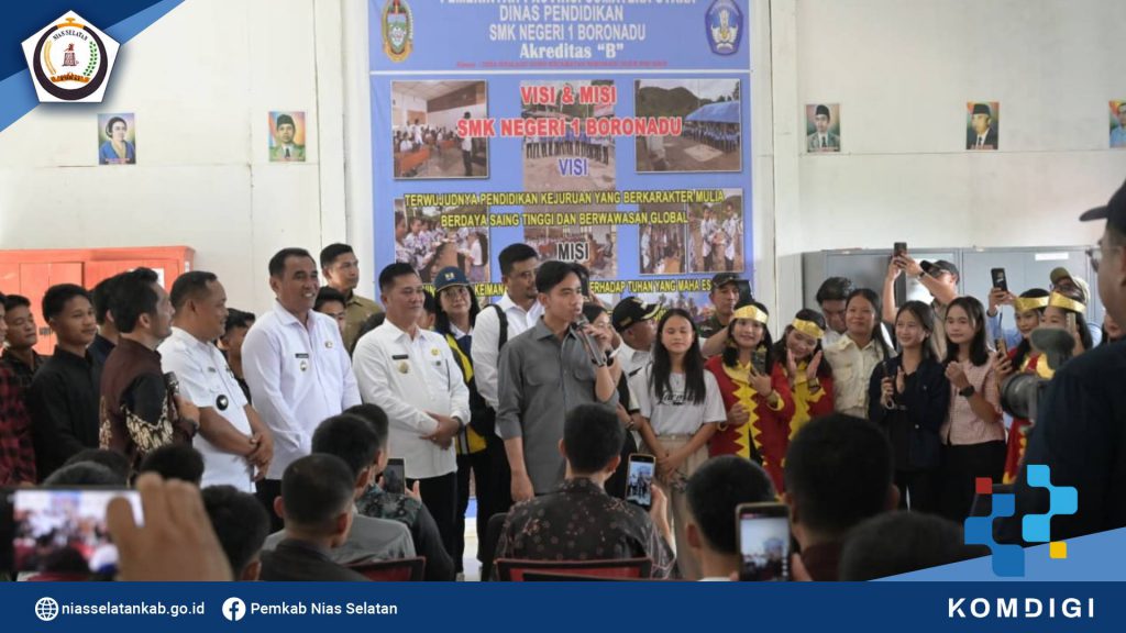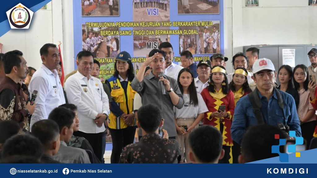 Nias Selatan – Dinas Kominfo ; Pemerintah Kabupaten Nias Selatan dalam hal ini Bupati Nias Selatan Sokhiatulo Laia bersama Wakil Bupati Ir. Yusuf Nache , ST., MM, menyambut Kunjungan Kerja (Kunker) Wakil Presiden RI Gibran Rakabuming Raka dan rombongan, dalam rangka meninjau sungai Gomo Kecamatan Boronadu Kabupaten Nias Selatan Sumatera Utara, Minggu, (21/12/2025).