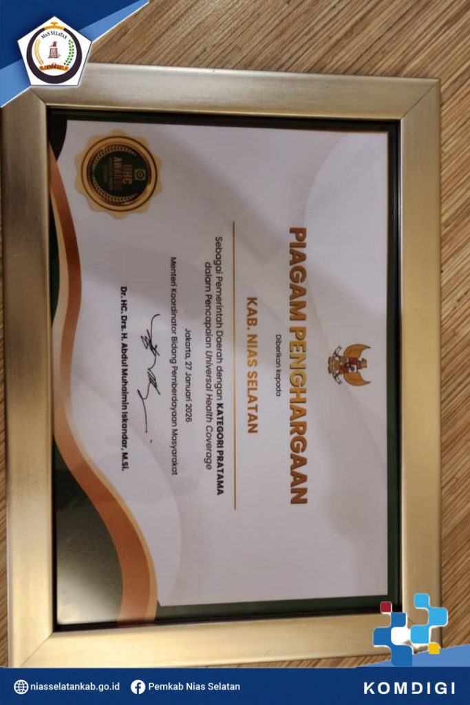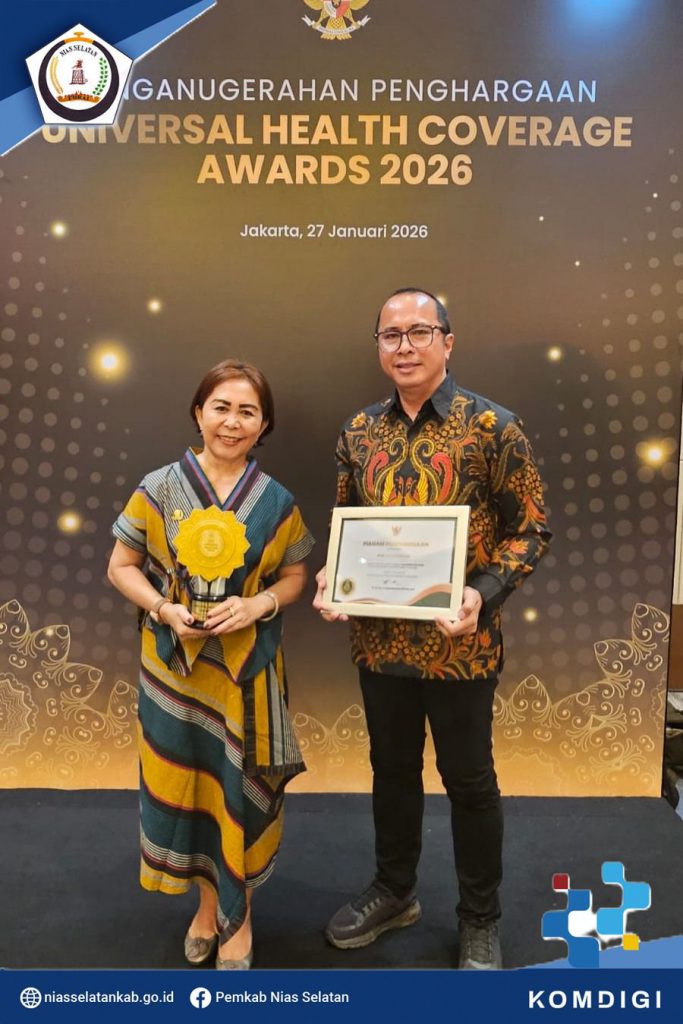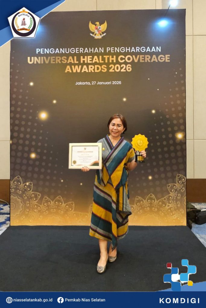 Pemerintah Kabupaten Nias Selatan menerima penghargaan sebagai pemerintah daerah dengan Kategori Pratama dalam pencapaian Universal Helath Converage (UHC) melalui acara Deklarasi dan Pencanangan Universal Helath Converage (UHC) serta Pemberian Penghargaan Pemerintah Daerah Tahun 2026, bertempat di Ballroom JIEXPO Kemayoran Jakarta Pusat, Senin (27/01/2026).