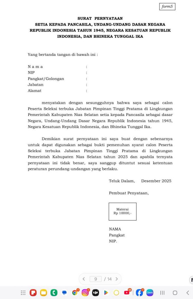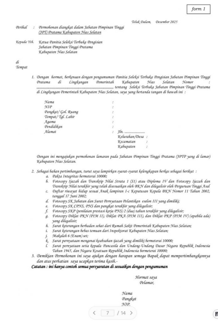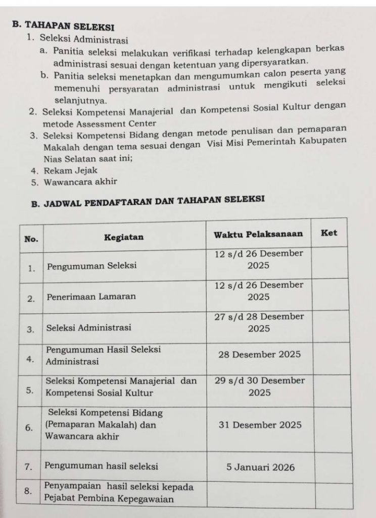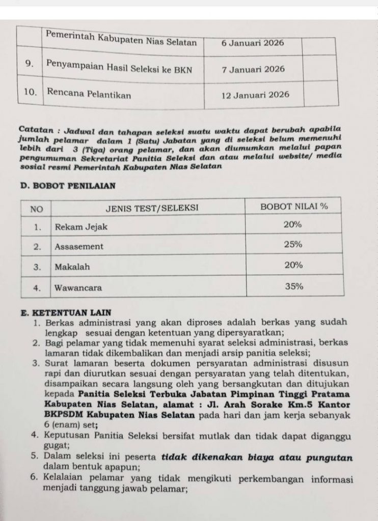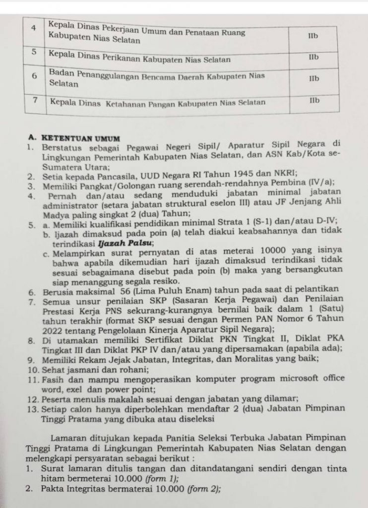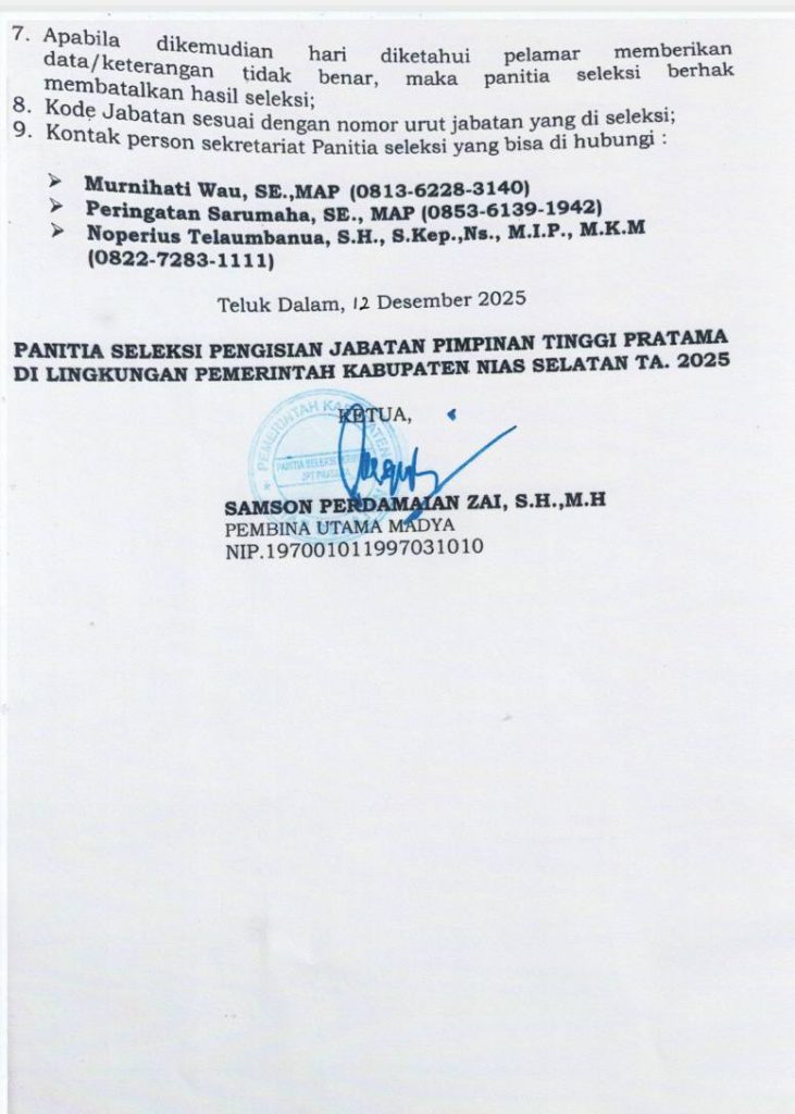 PENGUMUMANOleh Admin_Diskominfo / 15 Desember 2025 TENTANG PENGISIAN JABATAN PIMPINAN TINGGI PRATAMA MELALUI SELEKSI TERBUKA DI LINGKUNGAN PEMERINTAH KABUPATEN NIAS SELATAN TAHUN ANGGARAN 2025