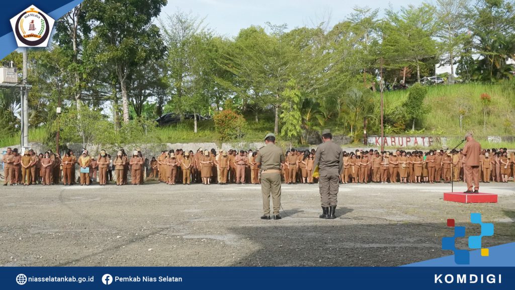 Pemerintah Kabupaten Nias Selatan, melaksanakan apel pagi yang dipimpin oleh Sekretaris Daerah Kab. Nias Selatan Ir. Ikhtiar Duha, MM di Halaman Kantor Bupati Nias Selatan, Jl. Arah Sorake km 5 Teluk Dalam, (Senin, 03/11/2025) .