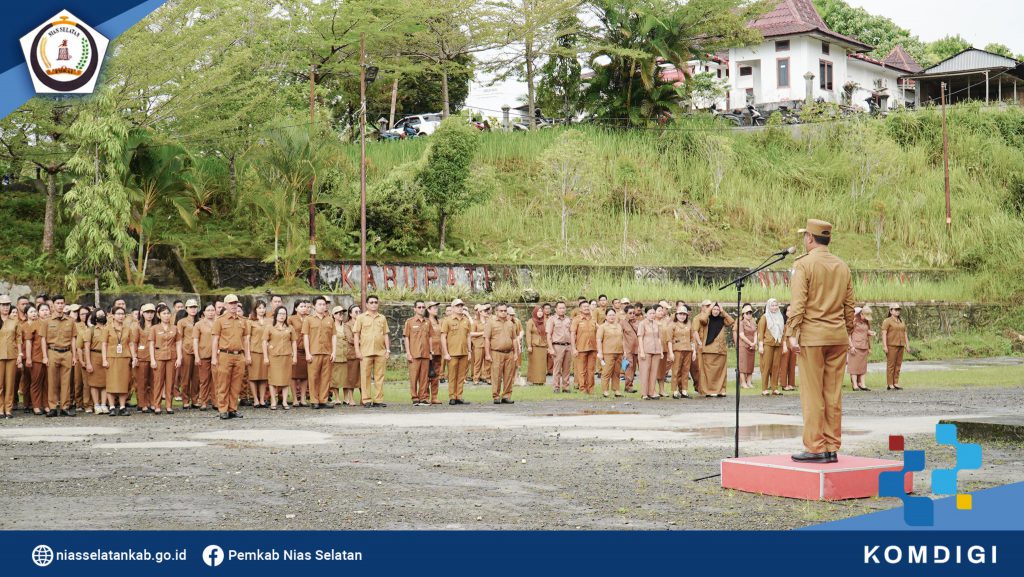 Wakil Bupati Nias Selatan Ir. Yusuf Nache, ST., MM memimpin pelaksanaan apel pagi lingkup Pemkab Nias Selatan, di Halaman Kantor Bupati Nias Selatan, Jl. Arah Sorake km. 5 Teluk dalam, (Senin, 20/10/2025).